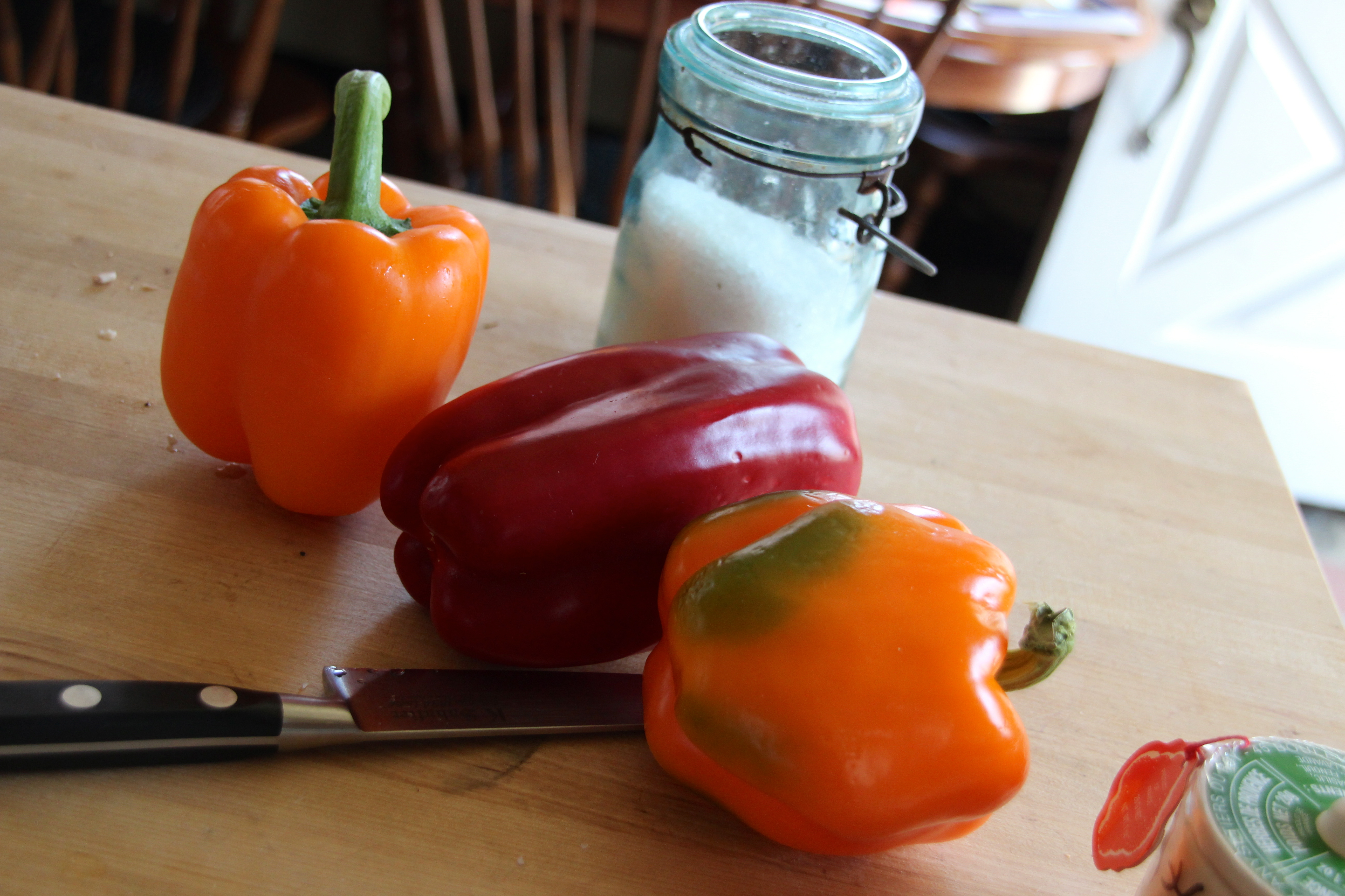 1/2 of a orange sweet pepper, half diced, half of it cut into slivers