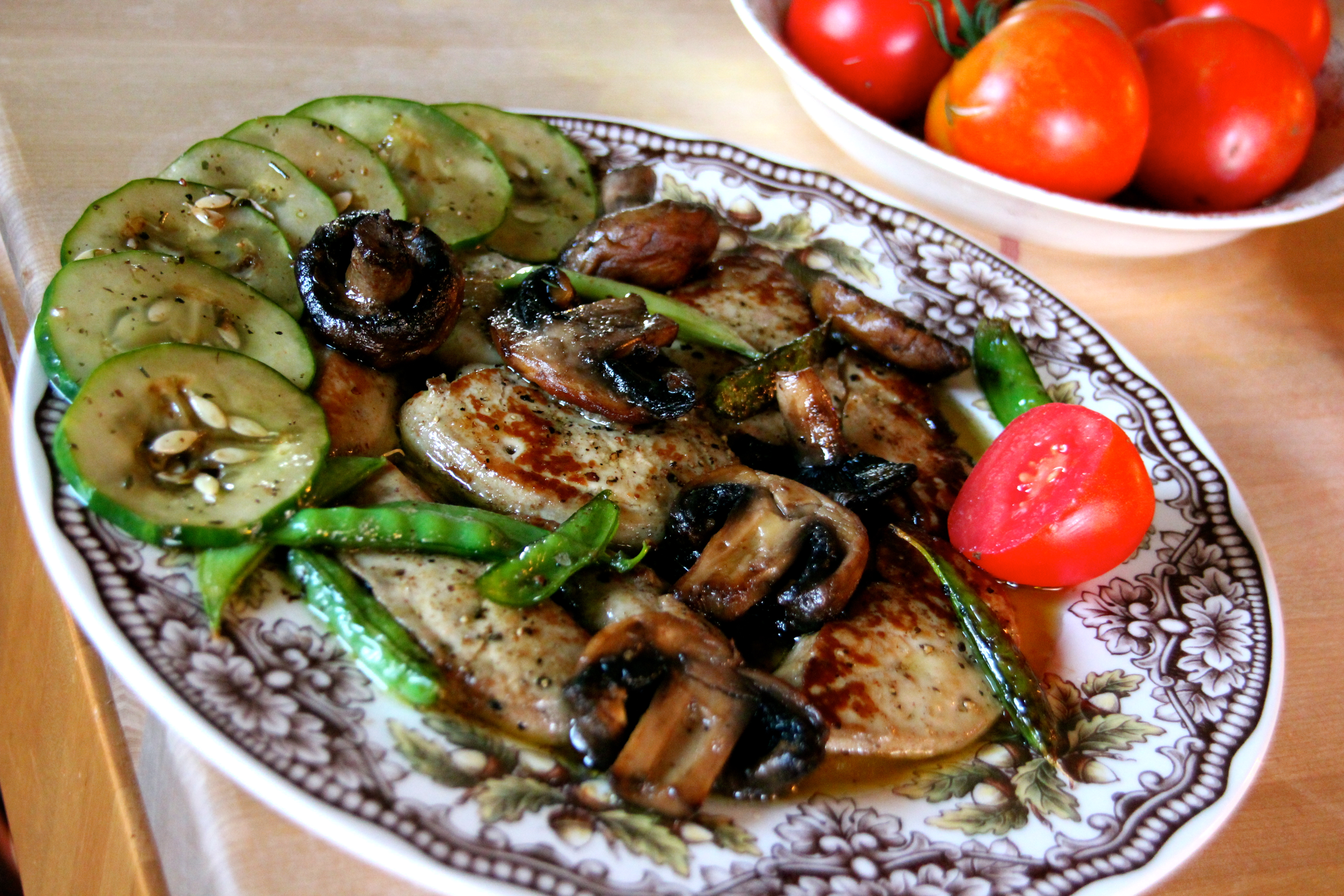 4. Several large mushrooms, quartered and 1/2 cup snap peas
