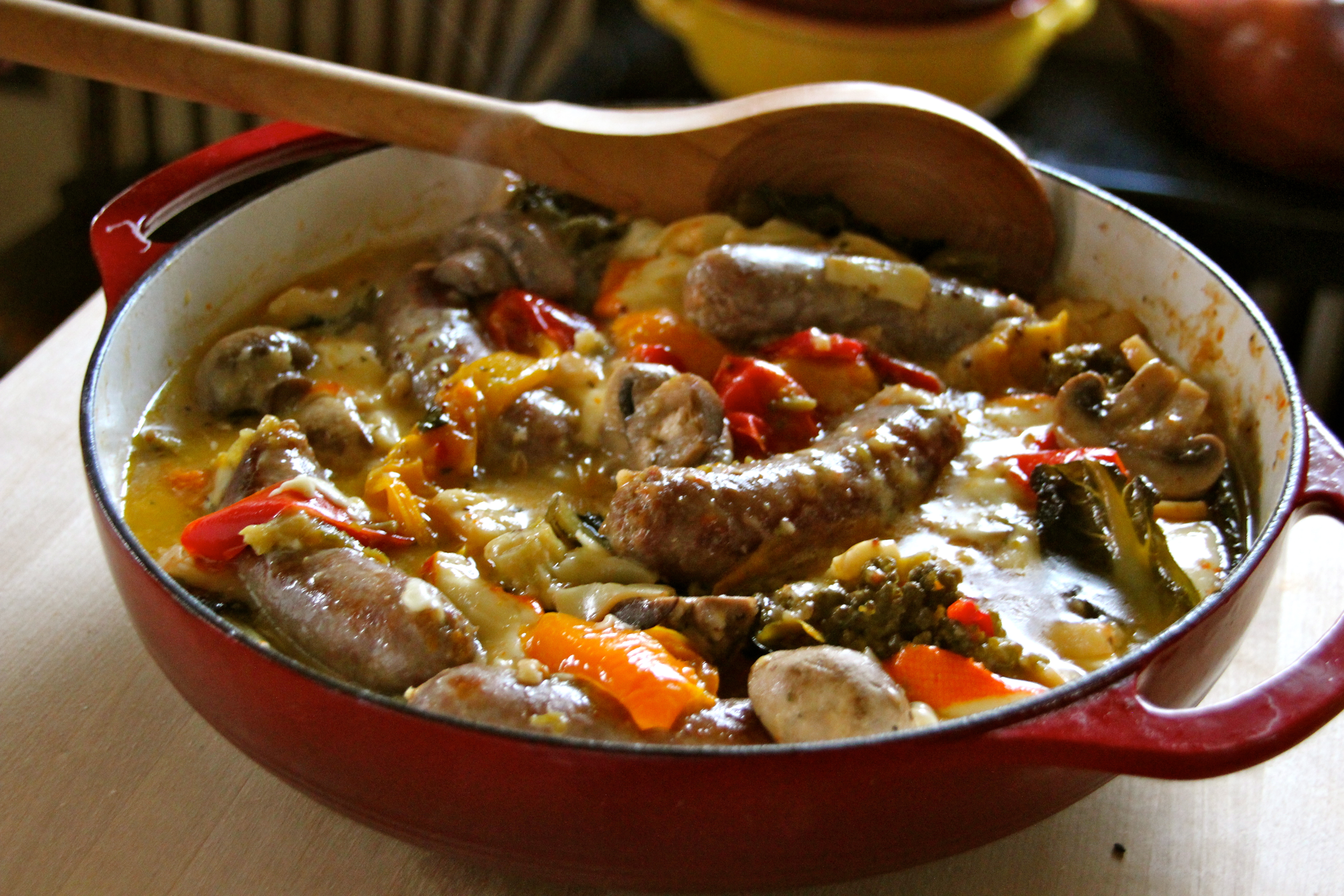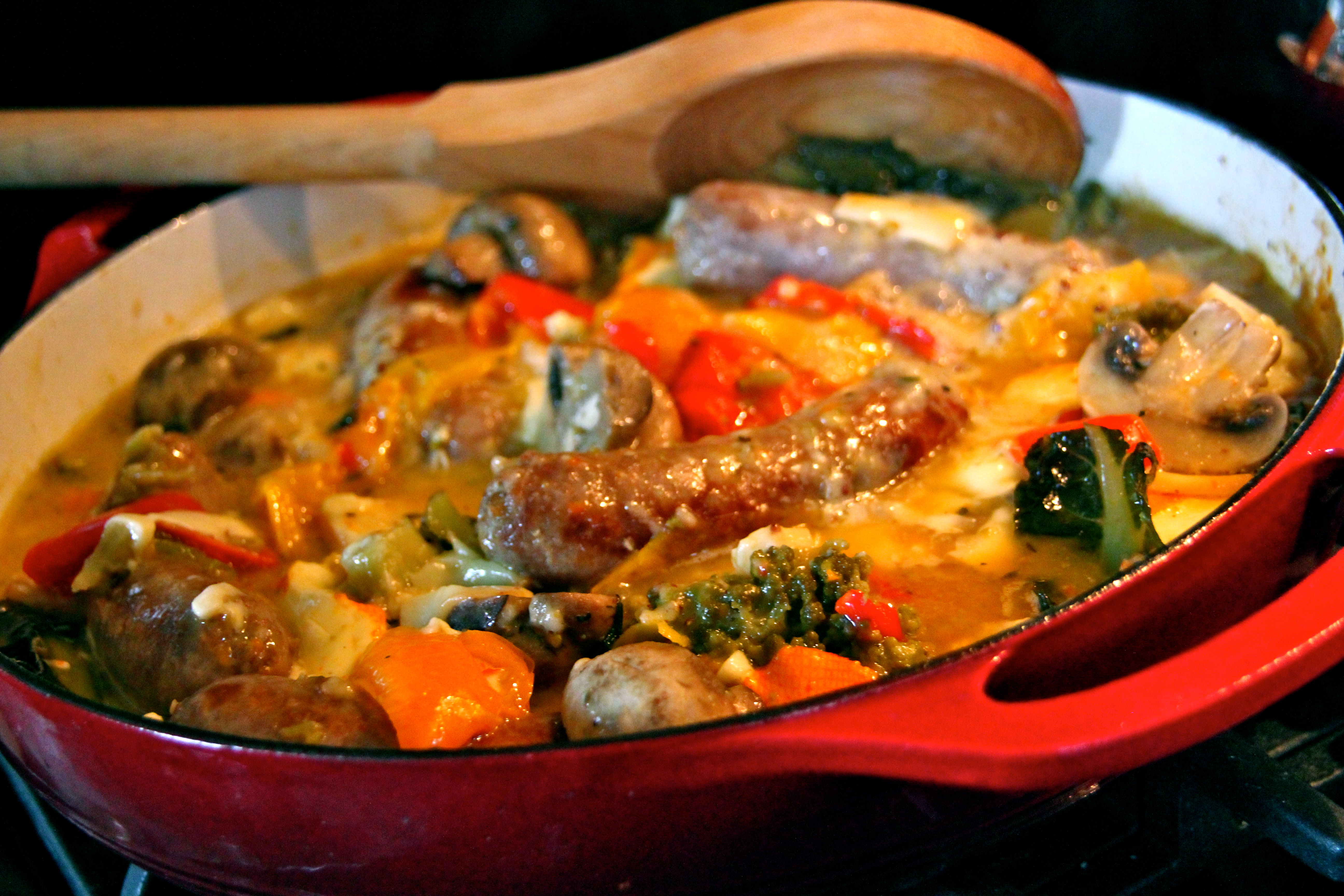 Late summer has arrived and the beautiful vegetables pouring from the garden beg to be married in this French one pot family meal. The addition of sweet tender sausage makes this an unforgettable experience. Join me in the last hurrah of summer!