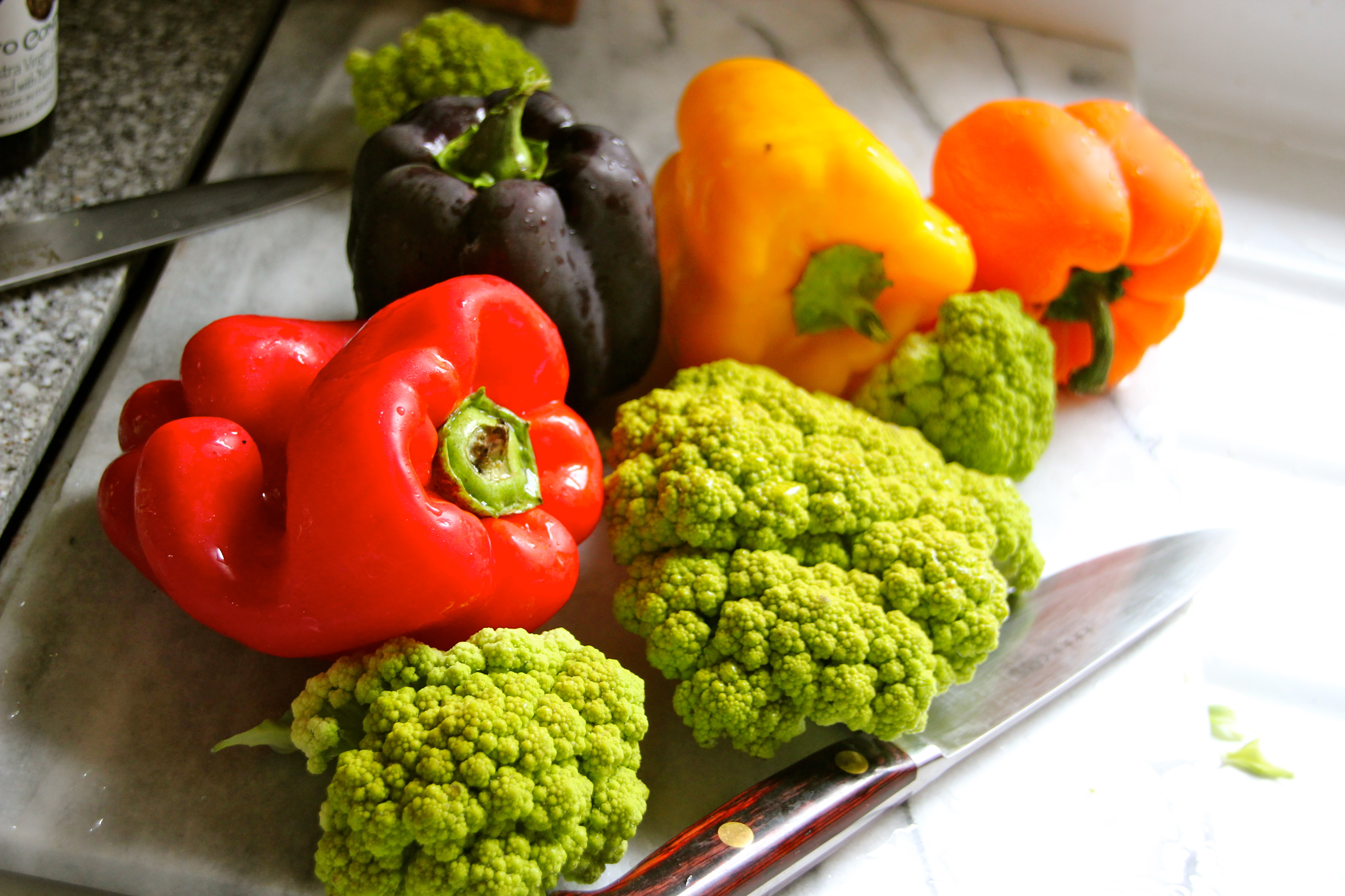 6-8 fresh sweet sausages One sweet pepper of each: red, orange, yellow and purple (cut into thick strips) 1 head of broccoflower trimmed to florets 3 tablespoons of safflower or extra-virgin olive oil 1 small cucumber, sliced into rings 1/2 Lb of mushrooms of choice kept whole or sliced in to if too big Sea salt and Fresh cracked pepper Herbs De Province (1 tablespoon) 2 tablespoons of flour 1/4 LB of Smoked Gruyere