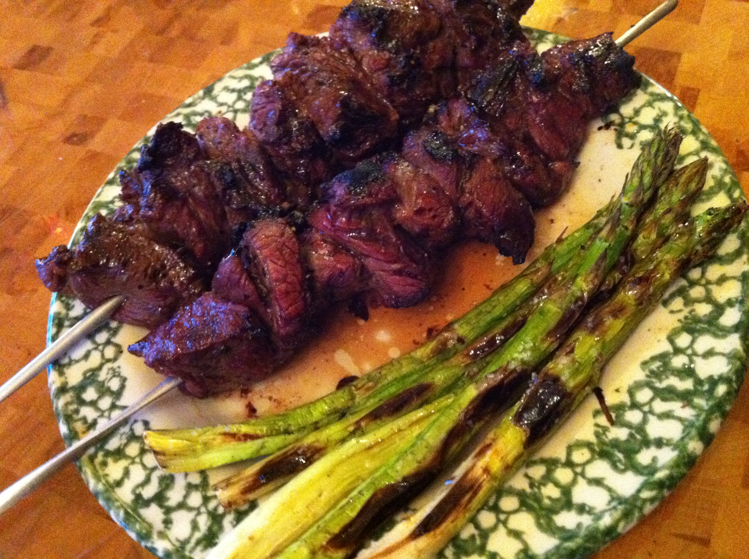 As easy as it gets, as frugal as it comes and more important, as delicious as this is, marinating a well marbled chuck roast sliced into cubes on a skewer with vegetables of the season on the grill is just about my favorite meal to prepare and enjoy with my family and friends. Try the marinate I’ve concocted in the video, and use the veggies of your choice. That leaves quite a lot of options – leek, eggplant, sweet pepper, asparagus, summer squash and whatever your imagination brings forward!