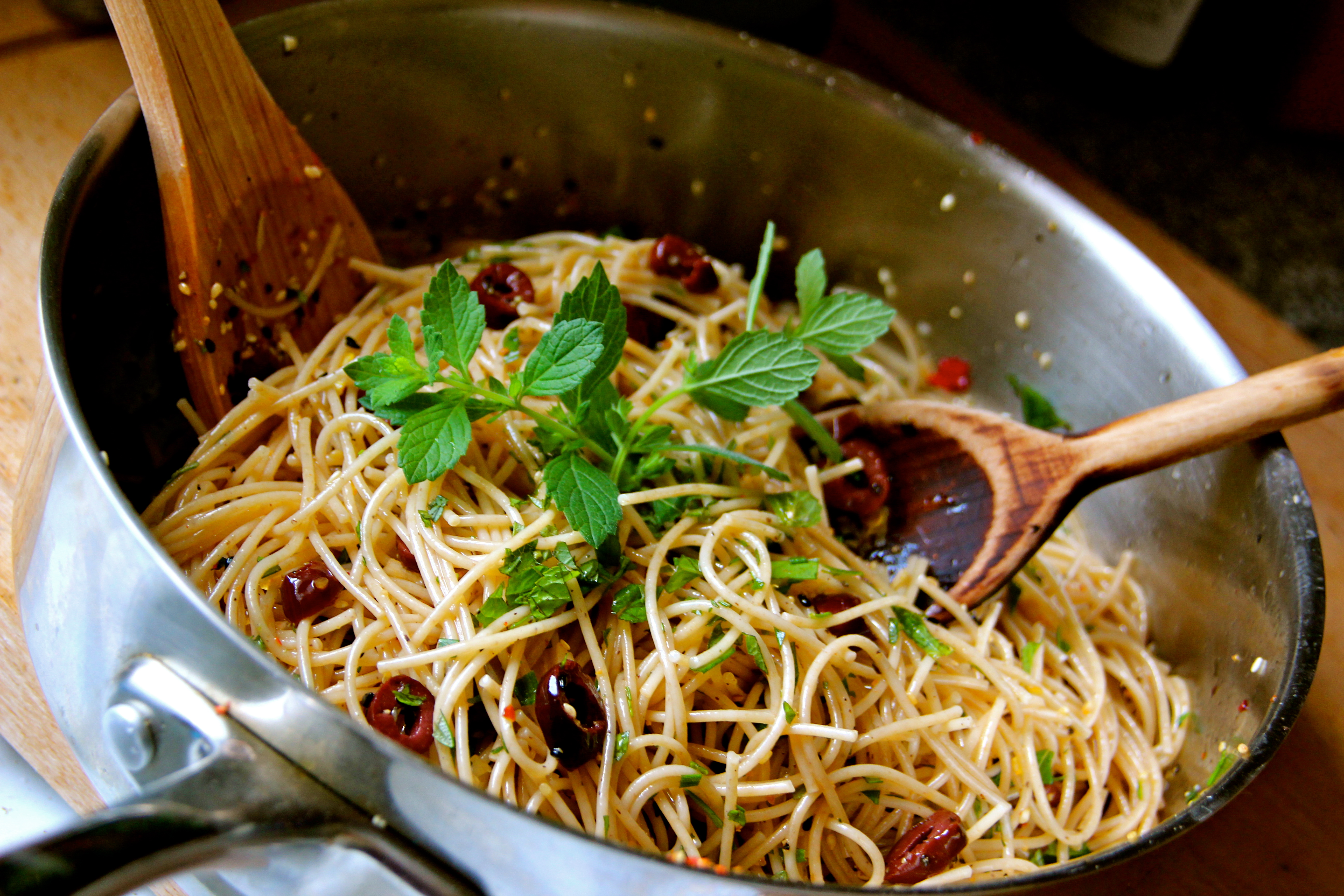 Here is a perfect dish for a warm summers eve. Served room temperature, whole wheat pasta is glorious when combined with truffle oil and nicoise olives and garden herbs. Do pasta the french way and break your routine. You’ll be very happy you did.