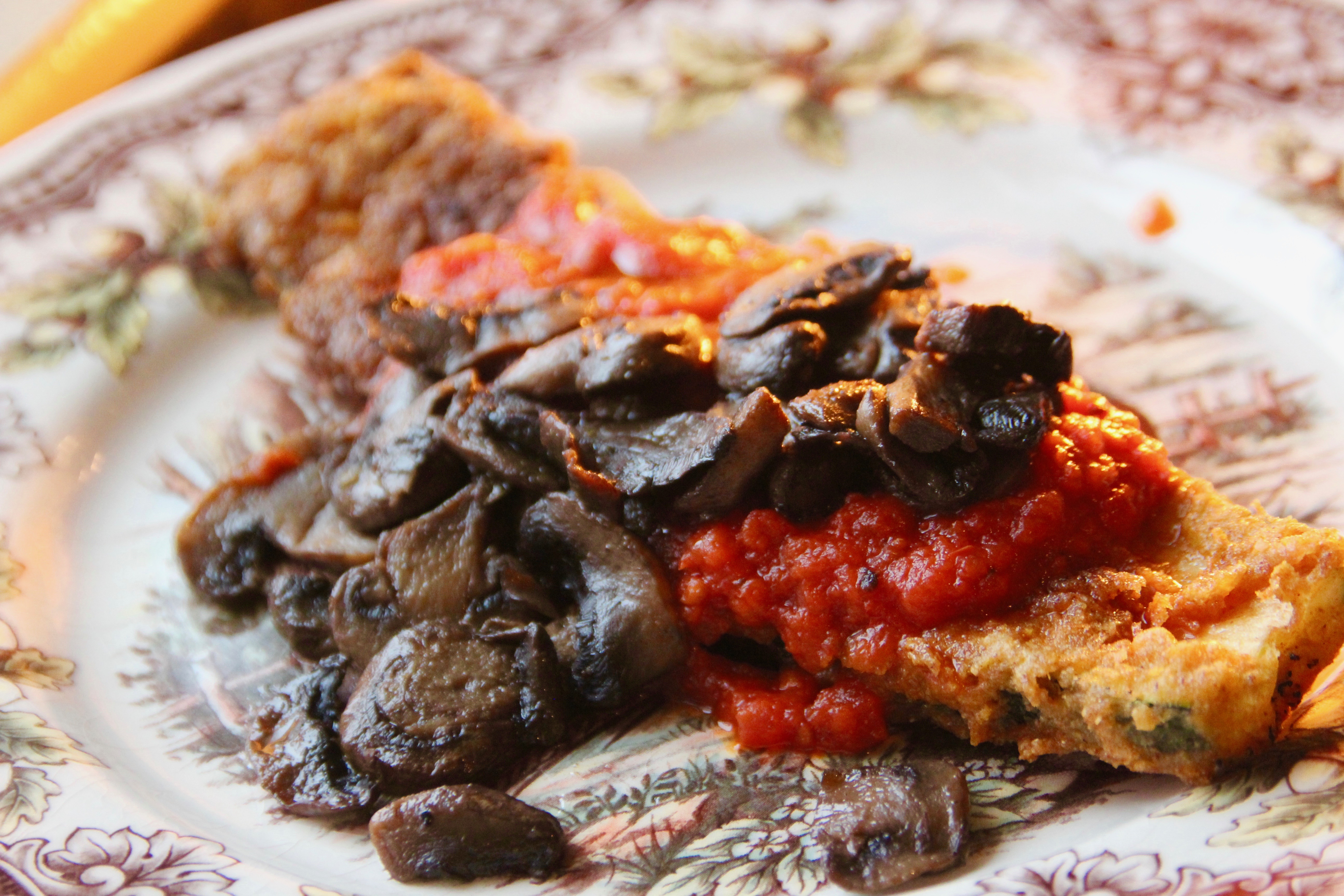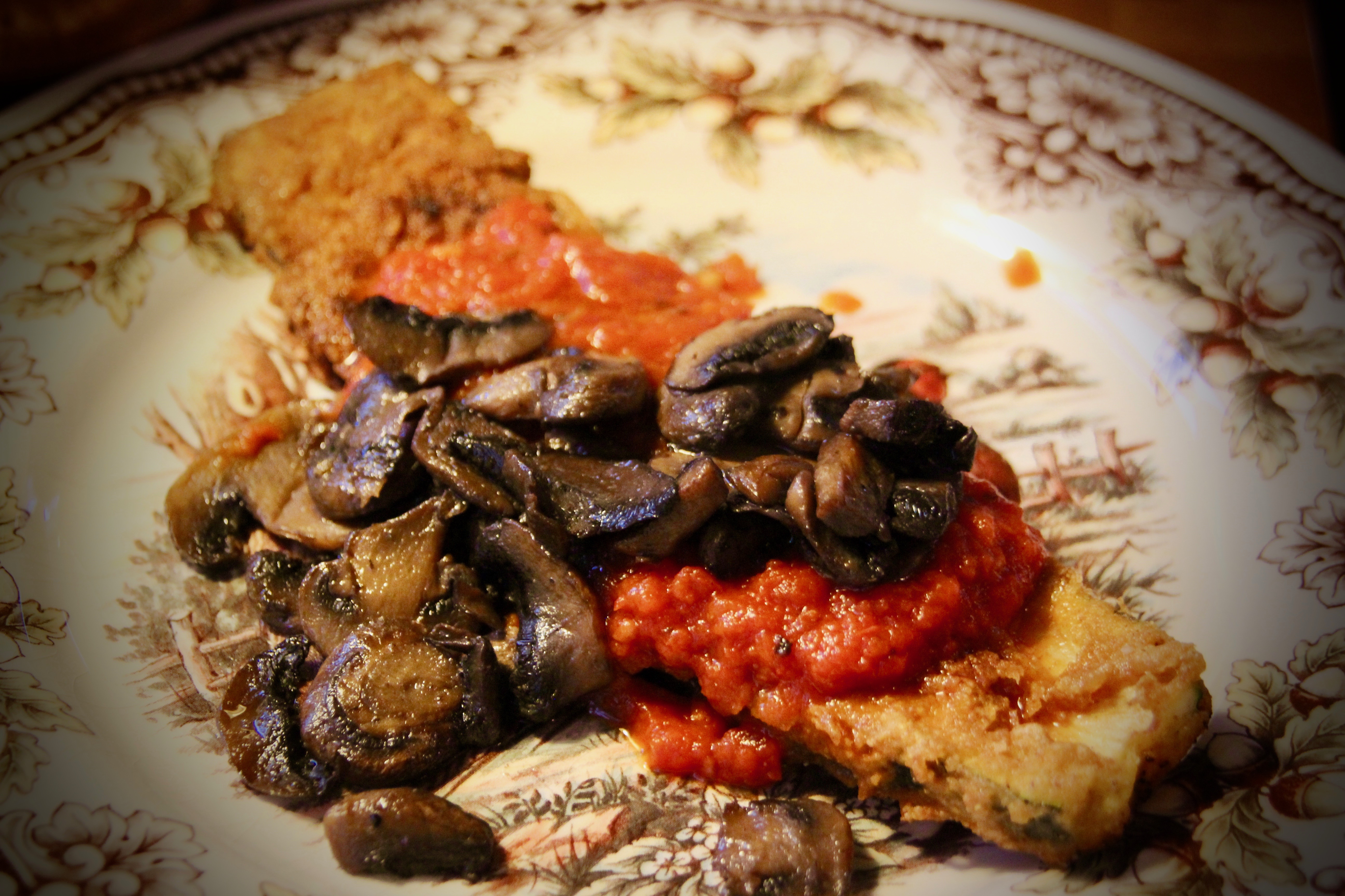 An incredible blend of savory flavor and texture, this crispy zucchini is the canvas for a nice tomato sauce with sautéed mushrooms. You will likely go back for seconds… I know I always do……sometimes thirds…..